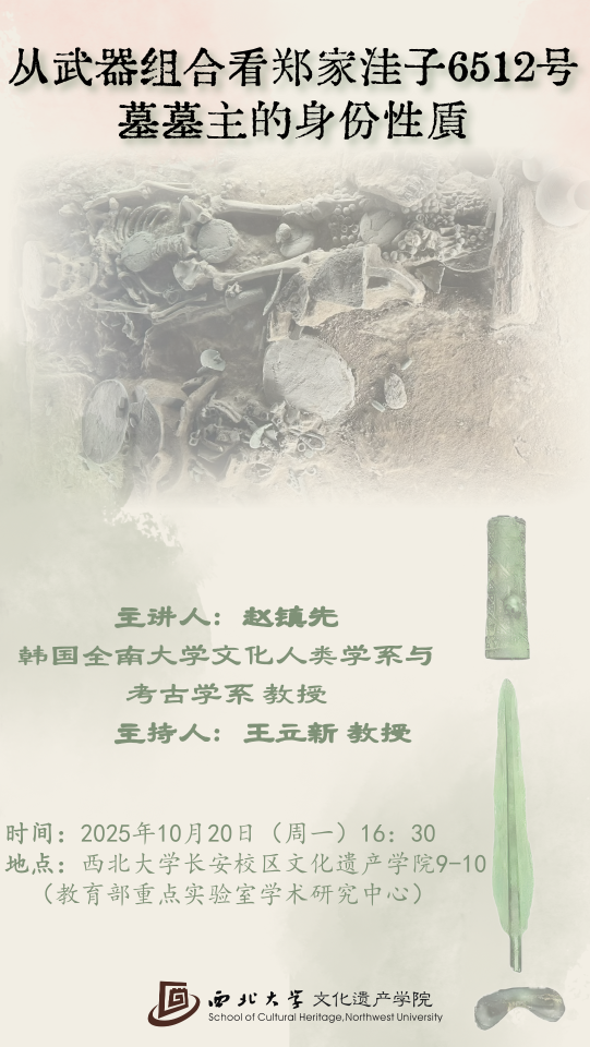讲座概要:武器大体可分为投射武器(projectile weapons)与冲击武器(shock weapons)两类。根据战争考古学和战争人类学的研究,战士的武器组合一般可分为三类:仅投射武器;投射武器+短柄冲击武器;投射武器+短柄+长柄冲击武器的完整组合。 本次讲座赵镇先教授将以郑家洼子6512号墓为例,研究该墓出土的铜箭镞、弓囊、弓弭及弓箭相关文物及三把琵琶形铜剑,对这些遗物呈现出典型的“投射武器+短柄冲击武器”组合进行论述, 并通过该墓出土种类丰富的车马器,推测墓主为酋长社会(Chiefdom)阶段的酋长。