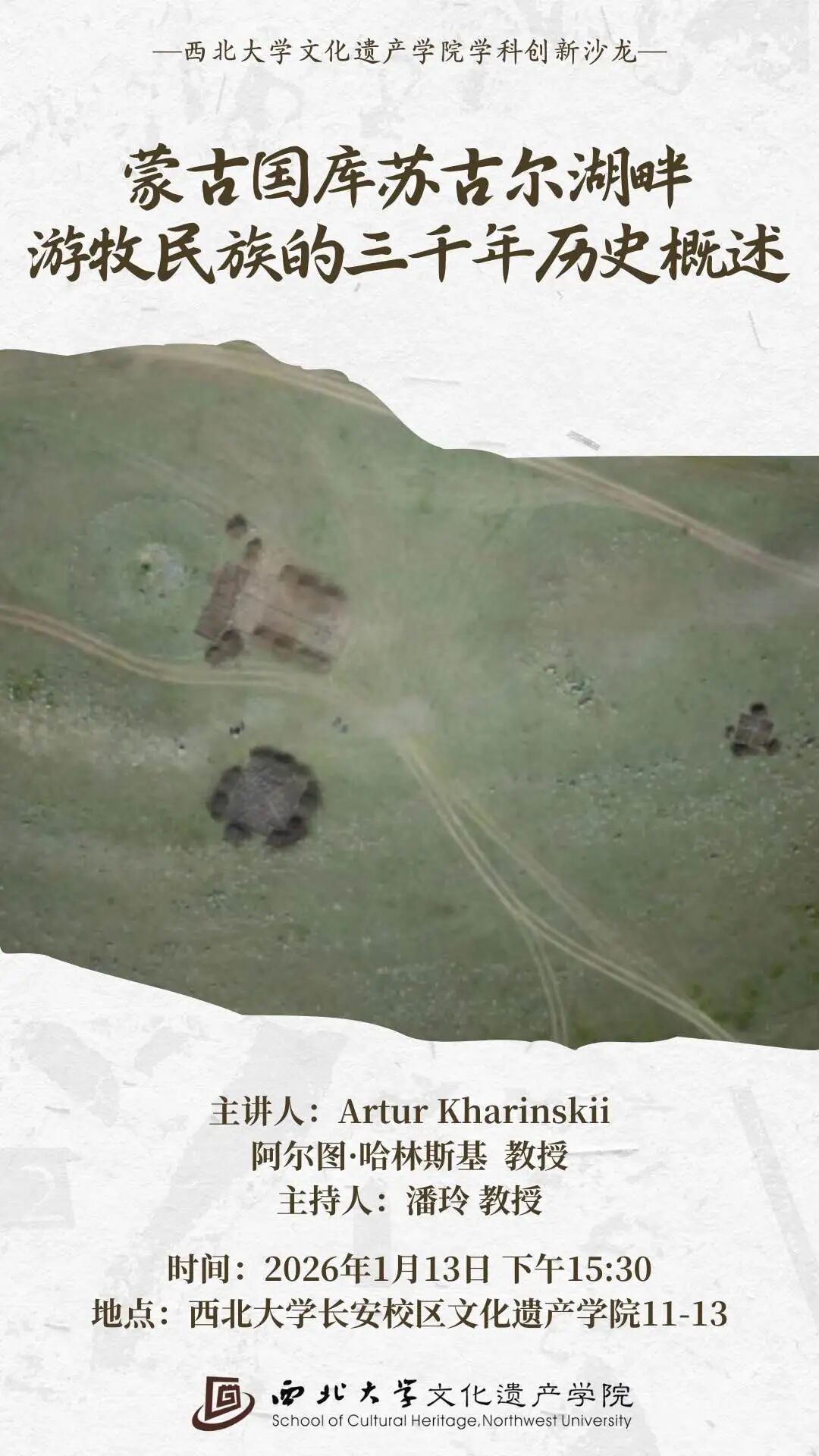 主讲人介绍:阿尔图·哈林斯基(Artur Kharinskii)教授,现任伊尔库茨克科技大学考古学实验室主任,并担任“蒙古、西伯利亚贝加尔及中国北方古代文化”学术会议理事。自1986年以来,长期致力于贝加尔湖及蒙古地区的考古田野调查与综合研究,主要学术方向聚焦于该区域从青铜时代至近代(公元前3000年—公元19世纪)的考古学文化演进、社会结构变迁与生计方式发展。累计发表学术出版物235篇(包括合著),出版专著4部,内容主要围绕西伯利亚及贝加尔湖地区的考古学、人类学和民族志展开,系统梳理并深入阐释了该地区的历史文化脉络。主持或参与的基金项目9项,参与国际合作项目3项,研究涵盖区域文化比较、跨学科方法应用及多国协作考古等领域。